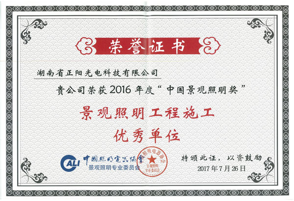 • 景觀(guān)照明工程施工優(yōu)秀單位